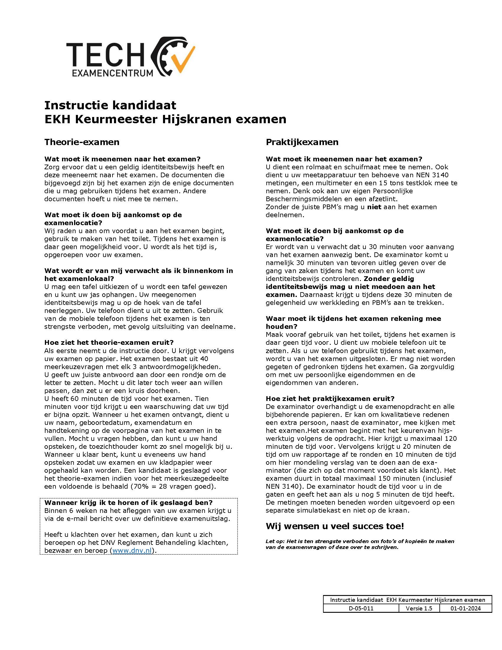 Een volledig EKH Keurmeester Hijskranen examen bestaat uit een theorie- en een praktijkexamen.